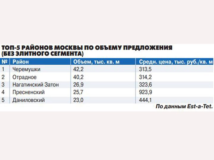 Среди районов по объему предложения с большим отрывом лидируют Черемушки и Отрадное (см. таблицу).