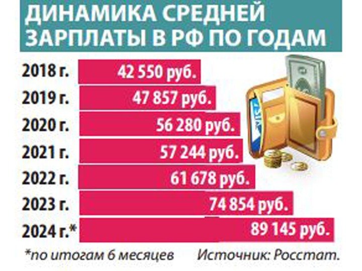Почти 90 тыс рублей в месяц Средняя зарплата россиян в 2024 году растет со скоростью курьерского поезда. В июне, по официальным данным, она в среднем по стране составила 89145 рублей в месяц. Еще в начале года мы радовались 75 тысячам. По сравнению с маем выплаты увеличилась на 3,2 %, а с июнем 2023 года – на 15,3 %. Правда, речь идет не о реальной (за вычетом инфляции), а о номинальной зарплате. Но и реальная тоже поднялась — хотя и не так резко, всего на 6,2 %. Фото: Алексей Меринов Эти цифры приводятся одновременно в двух отчетах весьма серьезных российских структур - Росстата и Минэкономразвития об экономической ситуации в стране в первом полугодии 2024 года. Рост зарплат это, конечно, хорошо, тем более, когда они поднимаются в среднем почти до 90 тысяч рублей в месяц. Напомним, что вначале года она составляла 75 тысяч. Хотя нужно заметить, что статистика, обсчитывая номинальную зарплату, не учитывает подоходный налог. А если из 90 тысяч удержать НДФЛ в 13 %, то получится «на руки» 77,5 тысяч. А если еще вычесть инфляцию, превысившую 9%, то итог будет еще скромнее. Но никто не поспорит с тем, что зарплаты растут и это позитивный фактор. Самые высокие у нефтяников и газовиков – в среднем 214 тысяч рублей в месяц, потом идут работники авиационной и космической отраслей – 170 тысяч. А тройку лидеров по самым высоким зарплатам замыкают … производители табачных изделий: 167 тысяч рублей. Вот тебе и борьба с табакокурением в масштабах страны! Но за всем этим статистическим праздникам скрывается парадокс: зарплаты по всей стране в среднем растут, а всеобщей радости и энтузиазма по этому поводу как-то не чувствуется. А если пойти в магазин и послушать разговоры покупателей, то они те же самые, что и два года, и пять лет назад. Продукты дорожают, лекарства дорожают, за коммуналку платить нечем… Многие экономисты объясняют этот парадокс тем, что рост зарплат носит во многом искусственный характер — он обеспечивается, в основном, не повышением производительности труда (и, соответственно, выпуском продукции), а борьбой за кадры. С которыми у нас в стране большие проблемы. Вот, чтобы они не разбежались, работодатели «авансом» поднимают зарплату. Но ничего хорошего в перспективе от этого ждать не приходится: искусственная прибавка к жалованию не мотивирует сотрудников на повышение эффективности работы. По некоторым исследованиям, большая часть коллектива не готова к дополнительным производственным нагрузкам. Ну а про инфляцию и говорить нечего – она разгоняется по той причине, что деньги не обеспечены товаром. Так как же оценивать «ударный» рост зарплат в стране — как позитивный фактор или негативный? - Разговоры о том, что рост зарплат не должен опережать рост производительности труда – это теория, - считает финансовый аналитик, кандидат экономических наук Михаил Беляев. - . Которая применима к идеальной экономике, существующей только в учебниках. Однако в реальном мире ее не существует. К тому же, в России действительно есть отрасли, где производительность труда заметно выросла: например, ВПК, сфера импортозамещения. Фото: Иван Скрипалев - Статистика учитывает только средние цифры. Но ситуация с зарплатами -то у всех разная. - Да, цифры средние: у кого-то доход вырос больше, у кого-то меньше. Еще, мы имеем определенные задачи в экономике. Развивать какие-то приоритетные направл