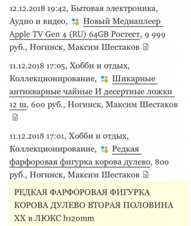 - Нет, этому делу всего месяц. Накупила тысяч на пять стартап, сама видела целую коробку статуэток мышат, большую резную люстру, гжельские статуэтки, часы большие - им 100 лет, но они ходят, куклы советские. Всё добро лежало в коробке в квартире. Наташа говорила, что только выставила его на продажу.