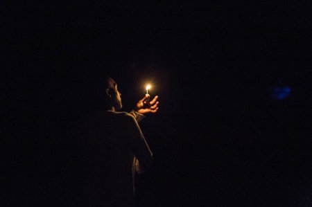Но эта как будто из Апокалипсиса выдернутая сцена уничтожения комфорта, который человечество выработало за тысячелетие своей истории, будет показана позже. А пока зрители рассаживаются, и двое музыкантов в этом пространстве играют традиционную индийскую музыку… И вдруг на сцену под звуки, напоминающие взрывы, опять же с веревками, которые намотаны у него на руки, вываливается человек в белом. Это Акрам Хан. Веревки, понятно, символизируют электрический кабель, который в окопной грязи (скоро белая одежда, в которую одет танцовщик, станет черной от грязи) укладывает солдат.