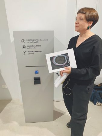 фото: Мария Москвичева Автомат для выдачи искусства.Сам Селезнев считает, что его нечаянный прогноз — это подтверждение статусности авангардного искусства: «неважно, на что нанесена примерная супрематическая композиция, — на клеенку или прялку, как в Генте, — предмет сразу признается искусством и попадает в музей».