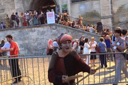 Собственно, в городе остались только те, кто работает в OFF- программе. А это примерно полторы тысячи артистов из разных компаний. Те же, что выступали в официальной — INN, — разъехались. Самый большой успех среди них получил спектакль английского хореографа Акрам Хана «Обманывая дьявола» — он час с небольшим держал в оцепенении несколько тысяч зрителей главной фестивальной площадки — двора Папского дворца. А ведь, второй показ из недельного блока, не успев начаться, тут же и закончился. Зрители даже не поняли, что произошло: танцор с красивым, гибким телом начал движении и вдруг — стоп. Потом выяснилось, что он так неудачно то ли приземлился на ногу, то ли подвернул, но больше не смог двинуться с места. Медицинская помощь, блокада — ничего не помогло, и спектакль отменили. А на следующий день из Лондона на замену уже летел хореограф-репетитор.