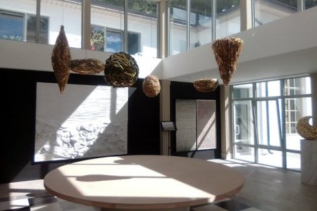 — Она считает, что люди разрушают природу, разрушают тот мир, в котором мы живем, и пытается его сохранить любыми способами. Вот почему Душана создает этих прекрасных птиц, очень декоративных и ярких, необычных, прототипы которых есть в природе, но там они совсем маленькие, и мы их не замечаем, а выполненные в такой прекрасной и деликатной технике, они приобретают лирические черты. Давайте, перейдем в Концертный зал. Сейчас здесь находится инсталляция Марко Бравура «Иконостас природы».