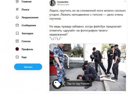 Ранее дизайнер сообщал, что утром 27 числа он вышел на пробежку, которую прервал, чтобы сфотографировать автозаки возле столичной мэрии. Когда он побежал дальше, его задержали сотрудники ОМОН, повалили лицом на асфальт и придавили конечности, вследствие чего Коновалов получил перелом ноги.