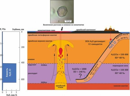 В 2016 году международная группа во главе с учеными из ГЕОХИ РАН исследовала магму зеленокаменного пояса (территории, которые состоят из магматических горных пород с минералами зеленоватого цвета) Абитиби в Канаде, возраст которого 2,7 млрд лет. Это была первая статья коллектива, опубликованная в журнале Nature. Тогда исследователи впервые получили данные о содержании воды и разных подвижных элементов: хлора, свинца, бария в переходной зоне — между верхним и нижним слоями мантии — и предположили существование древнего подземного резервуара воды, сравнимого или превышающего по массе современный Мировой океан. Ученые считают, что накопление такого количества воды произошло на ранних этапах развития Земли. В ходе новой работы они подтвердили это, изучив состав магмы из зеленокаменного пояса Барбертон в ЮАР возрастом 3,3 млрд лет. Там также нашли воду во внутренних слоях мантии.