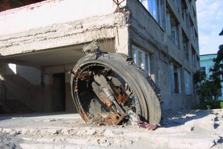 фото: Марина Перевозкина Оторванная башня танка, который подбил секретарь Совбеза РЮО Анатолий Баранкевич.— Почему помощь со стороны России пришла так поздно?