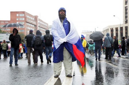 - Русские, вперед! – неожиданно тонким голосом кричит парень в косухе, продираясь вперед (да, людей уже много, приходится продираться) с плакатом «Я в бешенстве». Здесь, однако, не «Русский марш», речевку поддержать некому. Хотя вон, какой-то парень идет в черной толстовке с надписью на спине славянским шрифтом. А, нет, показалось: это не какое-то патриотическое движение, это «Всероссийская олимпиада школьников» (по какому предмету, правда, не написано).