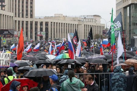 На проспекте Академика Сахарова состоялся крупнейший на данный момент митинг протеста против отказа в регистрации на выборах в Мосгордуму ряду кандидатов-самовыдвиженцев. По версии полиции, его посетили 20 тысяч человек, организаторы говорят почти о 50 тысячах митингующих. Акция была санкционированной, в отличие от аналогичных протестов 27 июля и 3 августа. Похоже, именно статус разрешенного мероприятия помог сделать митинг по-настоящему массовым. Никакого «осадного положения»: станция «Комсомольская», ближайшая к входу на митинг, выходит к Трем вокзалам, так что и в обычные дни полиции здесь много. Никакого строя щитов, касок и масок – зато, начиная с 13:30, нарастающий поток людей. Коридор от выходов из метро до начала проспекта Академика Сахарова огорожен металлическими полицейскими заборами – выплеснуться на проезжую часть и запрудить площадь людская река не может. - Ищи нас в толпе по желтому дождевику! – говорит в телефон девушка с фиолетовыми прядями. Дождь идет мелкий, но холодный и противный – кто не в дождевике, у того в руке открытый зонт. Под виадуком железной дороги – кстати, спешите видеть, ему скоро сто лет, архитектор Щусев, скоро перестроят для МЦД – поток людей сгущается до максимума: дальше хода нет. Стена из металлических ограждений прерывается только в одном месте - на официальной «зебре», причем на красный свет полицейские ее закрывают. Чтобы не мешать движению, а вы что подумали? Митинг 10 августа запомнится дурной погодой – перед рамками выставка зонтов и дождевиков. Они говорят о своих обладателях иногда красноречивее обычной одежды. Вот – брендированный дождевик от телефонной компании (монтер? Или просто где-то раздобыл сувенир?). Вот парочка в желтых дождевиках с большими надписями на спинах: «Свобода», «Солидарность» (нет, не приснопамятное политическое партия – логотип другой, хотя и члены того движения пришли с полузабытыми флагами). Много дождевиков из разных туристических мест – от Боржоми до Парижа и Венеции. Зонты не менее разнообразны: совы, Нотр-дам, жуткие розочки, небоскребы Нью-Йорка, яблони в цвету – и это не считая сотен простых черных. - Нет, двухподвес в походе штука бессмысленная, только хардтейл, и лучше на 28 дюймах! – компания уже-не-студентов, лет по 35, обсуждает велосипеды. – Мы как-то ехали через Литву до Калининграда, я на обычном-то горном устал всех догонять! Говорящий – дорогие желтые спортивные очки, хайтек-туристическая куртка – типичный, как говорили раньше, представитель среднего среди посетителей митинга возраста. 35 – 45 лет – это именно хорошая походная экипировка, легкие рюкзачки или вовсе их отсутствие, спортивная внешность. Те, кто младше – чаще выглядят как неформалы: волосы всех цветов радуги, пирсинг, субкультурный «шмот» с хитрой семантикой. Проще всего одеты те, кто старше 45: как на работу или на прогулку, в обычные городские куртки и кепки. Смотрите видео по теме: «Парфенов прочитал политический рэп на митинге в центре Москвы: видео» 00:34 - Тенерифе – это вообще оптимально, - слышится с другой стороны, от еще одной дружеской компании, постарше. – Почти круглый год 25 градусов, вода столько же, если стало жарче – просто уходишь в тень! И мои ребята с годовалым ездили – никаких ротавирусов! Люди с трудом просачиваются между афишными – на самом деле, рекламными тумбами: на 