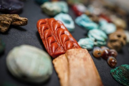 В числе находок спецалисты называют фигурку сатира, а также вырезанные из кости миниатюрный череп и фаллосы, а также множество амулетов, колокольчиков и других предметов такого рода. Помимо кости, в качестве материалов использовались бронза, янтарь, аметист, египетский фаянс, стекло, хрусталь и камень. Сундук застыл в вулканической лаве, что помогло ему сохраниться