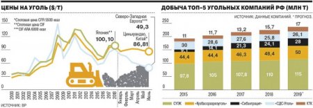 «Данные добычи в целом отражают мировую динамику спроса на сырьевые товары на фоне замедления мировой экономики. Но не только. В угольной отрасли происходит изменение структуры спроса, как по товарному составу, так и по экспортным направлениям», — отметил аналитик ГК «Финам» Алексей Калачев. По его словам, тренд на снижение доли угля в мировом энергобалансе получает подтверждение в переходе европейских энергокомпаний с угля на природный газ и возобновляемые источники энергии. Это имеет два важных следствия для российской угольной отрасли. Во-первых, становится острой необходимость переориентации экспортных угольных потоков с Запада на Восток. Это требует расширения пропускной способности железных дорог в восточном направлении, а также строительства и модернизации угольных терминалов дальневосточных портов. Для этого нужны время и средства. Решение этих проблем заложено отчасти в нацпроектах, особенно в «Комплексный план модернизации и расширения магистральной инфраструктуры на период до 2024 года».