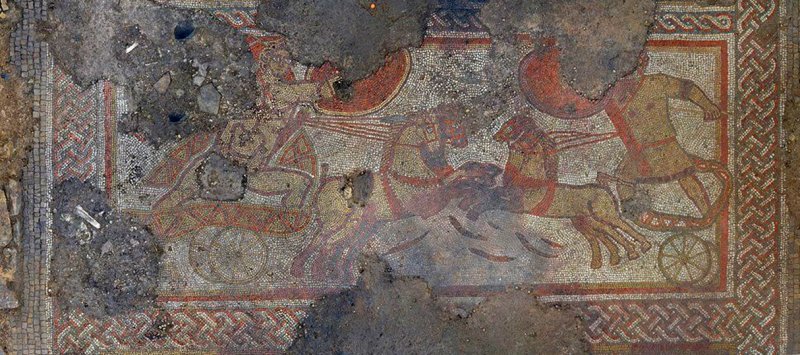 Фото: historicengland.org.uk Размеры мозаики, украшавшей, по всей видимости, пол гостиной или столовой, составляет 11 на 7 метров. Кроме мозаичного пола археологи раскопали остатки построенной в позднеримский период, между 3 и 4 веками нашей эры большой виллы с главным домом, хозяйственными постройками и, предположительно, баней.