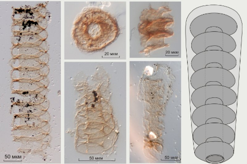 – Tubula tortusa представляет собой полую трубку, вокруг которой по спирали навито тонкое цилиндрическое образование. В процессе захоронения эта структура могла сплющиваться, приобретая форму, близкую к ленте, – говорит заведующая лабораторией литологии и биостратиграфии ИГГД РАН Елена Голубкова.
