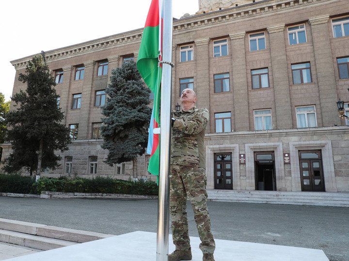 Алиев поднял флаг Азербайджана в Ханкенди. Фото: president.az Многомиллиардные инвестиции и диверсификация экономики