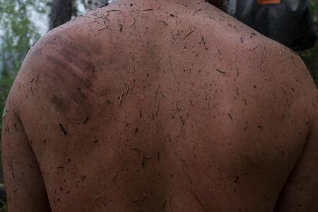 Сергей Строителев«Сегодня был сложный день. Жара адская, нашему табору огонь угрожал. Тут ручей метрах в ста, за ним горит лес. Ручей как естественная преграда, но произошел переброс на нашу сторону, пришлось окапывать в срочном порядке, чтобы не погореть. Удалось изолировать этот участок, сейчас там сидит наш человек, караулит, чтобы, не дай бог, там больше ничего не загорелось. Одной искорки достаточно, особенно для сухостоя».