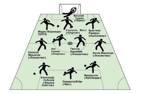 Полузащита: Алексей Миранчук («Локомотив»), Аяз Гулиев («Спартак»), Гжегож Крыховяк («Локомотив»), Антон Миранчук («Локомотив»)