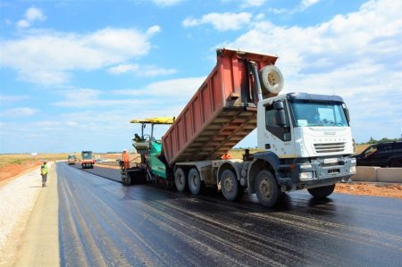 «На первом этапе строительства дороги Симферополь – Евпатория – Мирный, протяженность которого составляет 25 километров, выполнено более 60% дорожных работ. Устроено порядка 85% от общей протяженности асфальтобетонного покрытия в двухслойном исполнении. Ведутся работы на четырех транспортных развязках, сооружаются шесть путепроводов – они в разной степени готовности. На трёх ведутся работы по монтажу балок пролётного строения, на одном балки полностью смонтированы, ведутся работы по устройству мостового полотна, на двух сооружаются опоры», – сообщил Бабичев.