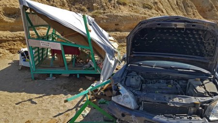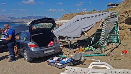 Симферополь, 29 августа. Легковой автомобиль упал с 15-метрового обрыва на палатку, установленную на пляже мыса Меганом (Судак). Как сообщил министр чрезвычайных ситуаций Республики Крым Сергей Шахов, единственной пострадавшей оказалась отдыхающая, которой стало плохо от увиденного.