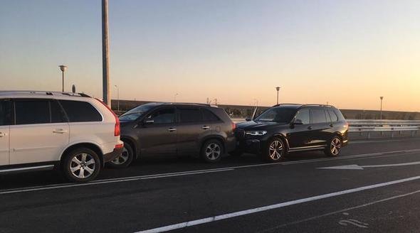 Как сообщил источник Крыминформа, на пересечении «Тавриды» и второстепенной дороги из-за несоблюдения безопасной дистанции произошло столкновение трех легковых автомобилей, двигавшихся в попутном направлении на выезд из Крыма. Внедорожник Volvo XC90 с питерскими номерами резко перестроился из полосы для поворота налево в основную, но не смог вовремя затормозить и въехал в Peugeot 408 из Ростовской области. Из-за резкого маневра и минимальной дистанции для торможения в него врезался Kia Sorento, зарегистрированный в Московской области. Иномарка крымского миллионера, за рулем которой находился его личный водитель, оказалась в своеобразном «паровозе» четвертой – водитель совершил тот же маневр, что и Volvo, и влетел в корейский автомобиль.