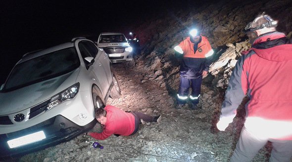 Пострадавшие были найдены в течение часа. Автомобиль застрял на грунтовой каменистой дороге. При помощи лебедки и такелажного оборудования спасатели стабилизировали машину. В медицинской помощи никто не нуждался.