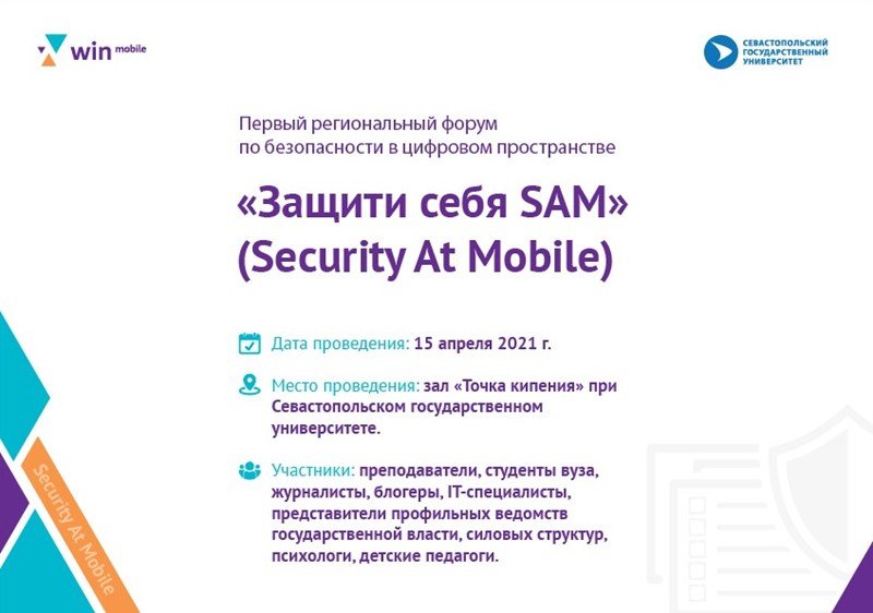 Мобильный оператор «К-телеком» (бренд Win mobile), в рамках заключенного в марте 2021 года договора о сотрудничестве с Севастопольским государственным университетом, реализует проекты, направленные на формирование новых цифровых компетенций у крымских студентов. Один из таких проектов, осуществленных в рамках партнёрства с университетом, – региональный форум по безопасности в цифровом пространстве «Защити себя SAM» (Security At Mobile) состоялся 15 апреля.