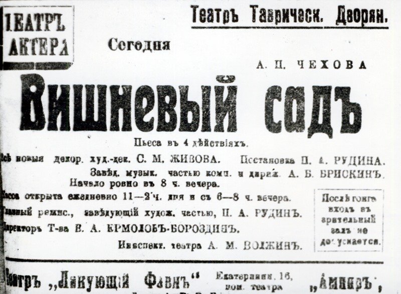 «Руководители «Театра актера» ведут усиленную подготовительную работу к открытию сезона в Дворянском театре. Художником Живовым пишутся новые декорации под наблюдением главного режиссера П. А. Рудина, работавшего прежде в театре Комиссаржевской…», – сохранилась заметка в 143 номере от 21 сентября 1919 года газеты «Южные ведомости».