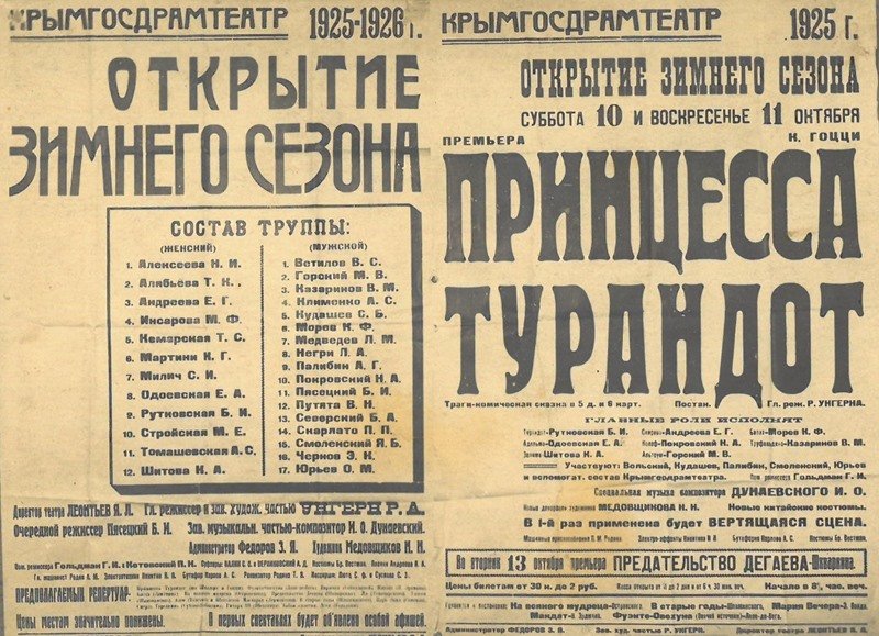 Главным режиссером театра в то время трудился Рудольф Унгерн – один из соратников Мейерхольда. Осенью 1925 года в Симферополь приезжает молодой талантливый композитор и музыкант Исаак Дунаевский, который стал заведующим музыкальной частью театра.